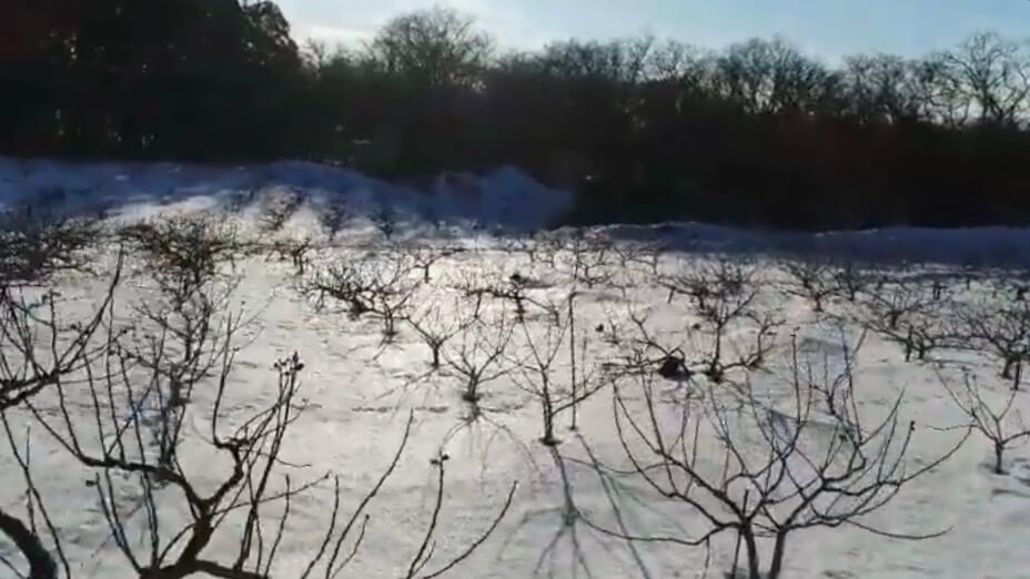 3月に入り雪が溶けたころに行われるのが、剪定講習会。地域振興局 果樹担当の指導の下、生産者を対象に行われます。高齢の生産者でも手の届くよう低い位置に実をつけさせるべく、活かす枝を見極め剪定していきます。